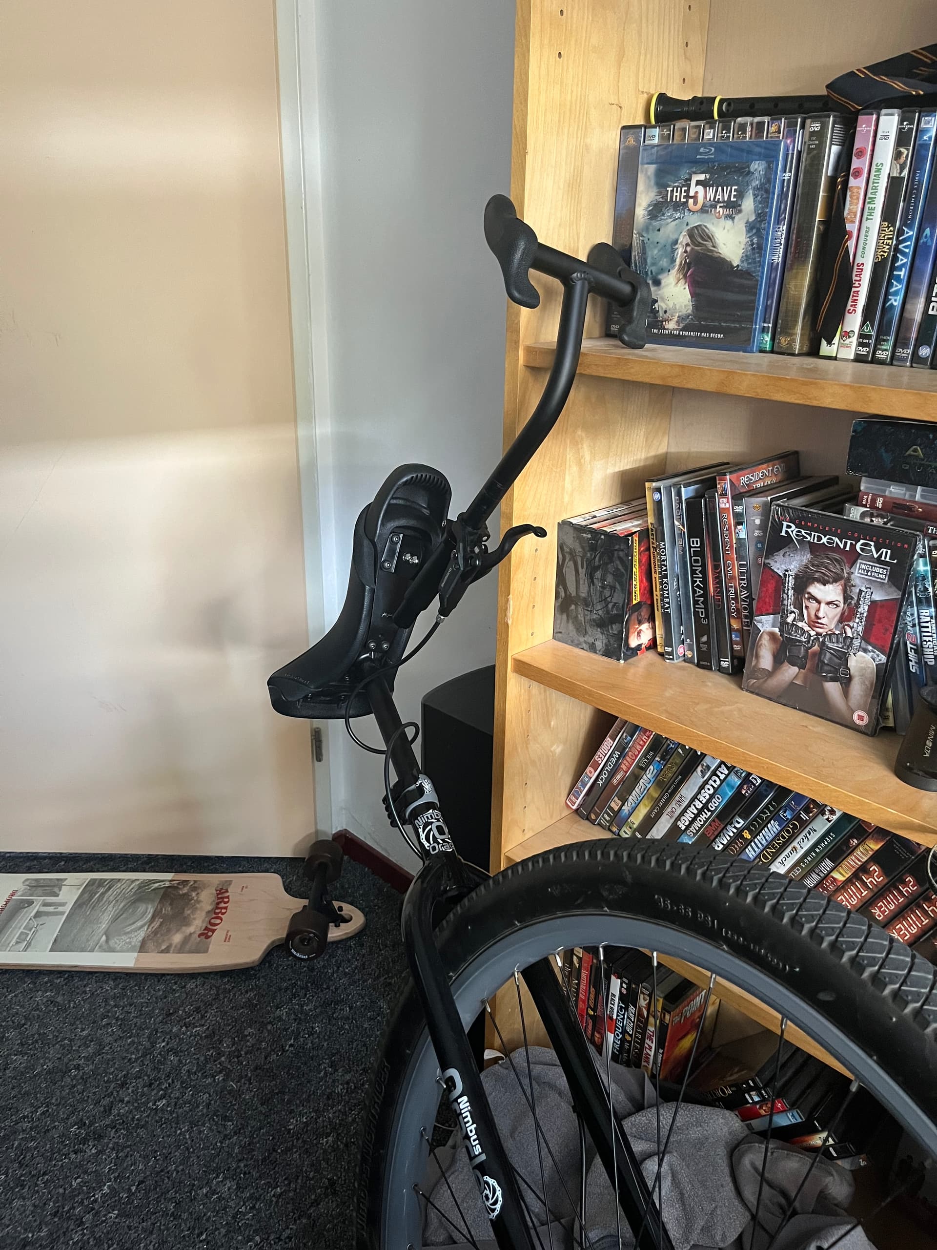 At least in a straight line it isn’t too bad, but while cornering on the narrower tire it felt like the unicycle “leans in” too much underneath me. Meanwhile on the wider 2.125” (57c) tire that the 26er came with it feels somewhat like the opposite; the unicycle doesn’t quite lean in enough. I find it easier to handle though as I can sort of “push” through it by leaning more myself, rather than fight against the excessive lean of the skinnier tire. I don’t know how to put it into better words unfortunately, but it feels like I’ve learned something (probably obvious