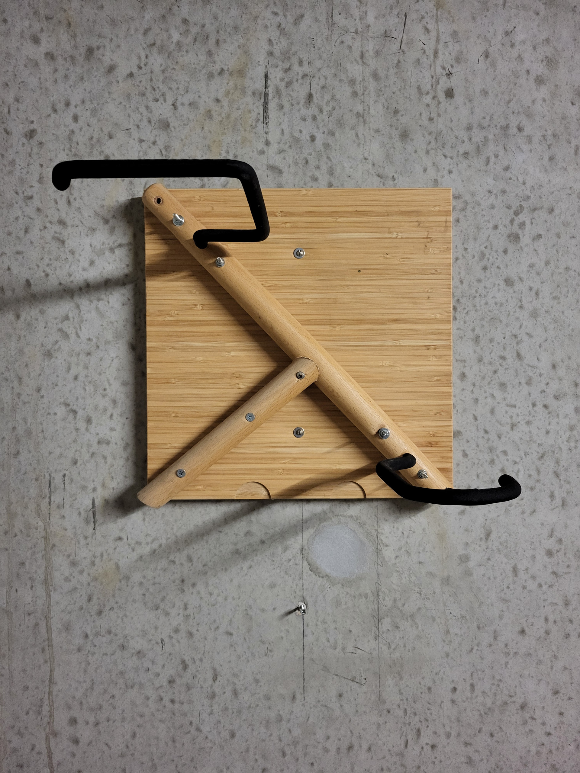 Apart from the hooks I already had, 100% of the hardware and raw material is salvaged.