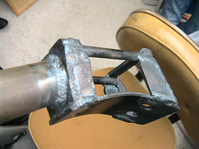 This is one way to strengthen an existing rail adaptor or T-7, but the time to cut and weld the six plate steel gussets was a real pain and makes fitting the seat post and seat more difficult. That said, it makes has made the rail adaptor much stiffer than the stock adaptor.