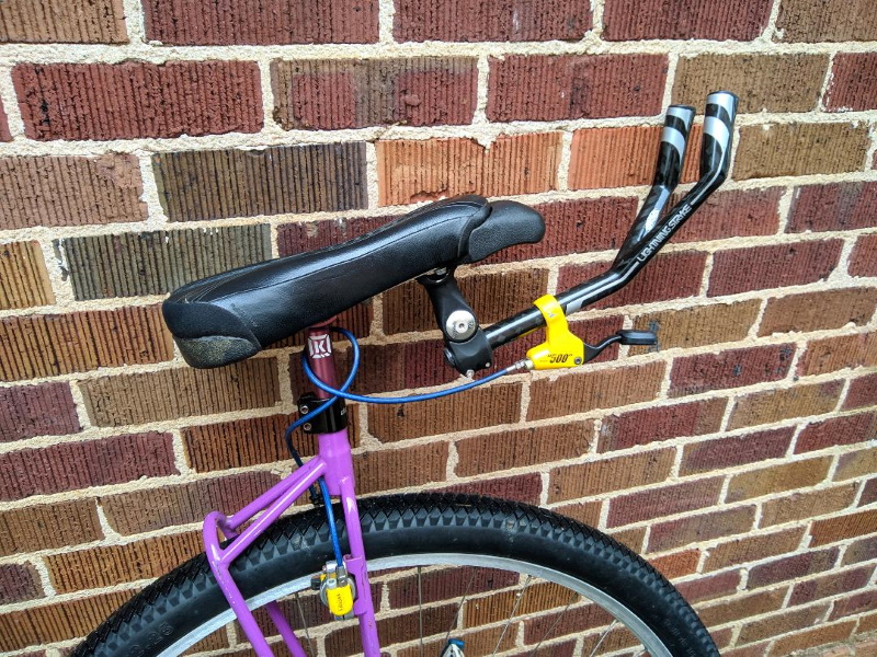 Probably a bad idea to put something light and fragile on the front of a unicycle, but I couldnāt resist this cool carbon fiber aerobar I saw on ebay for $25. Itās from a Profile Lightning Stryke clip-on aerobar kit.