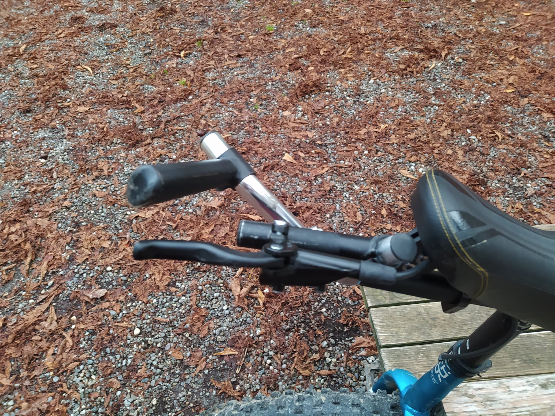 I`m planning to move the grip closer to the saddle, but so far this is a setup I like to ride, with the material I have. It’s quite a puzzle with those bar ends and their odd angles and shapings to place things the way you want them to …
