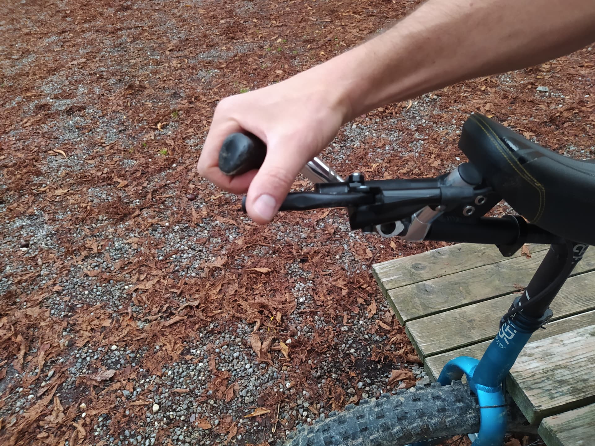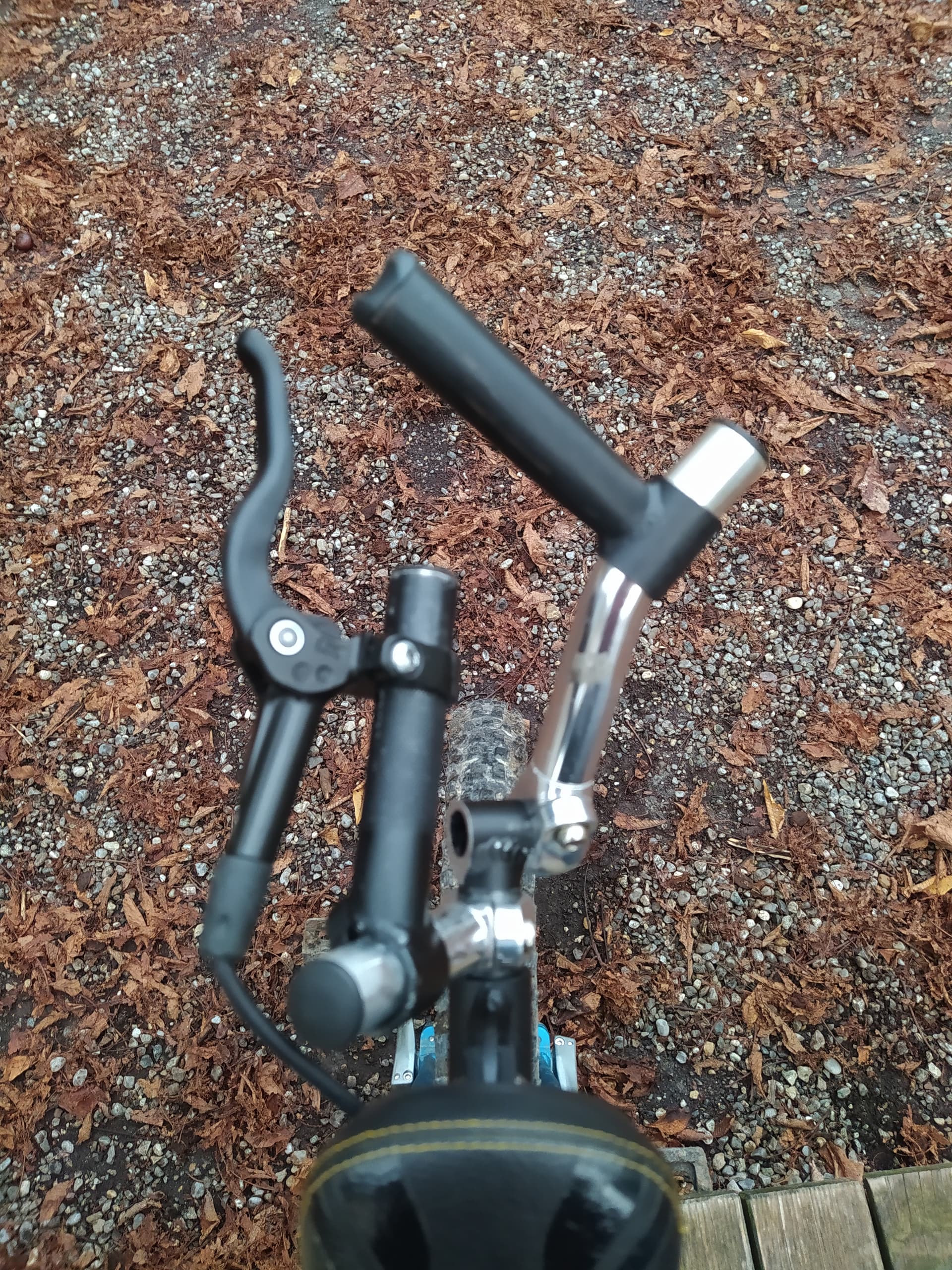 with a bunch of used bar ends and some cutting and readjusting I went today for my first ride with the brake in position for the thumb. I’m not yet satisfied with the setup, I need to visit the bike-shop for more material to experiment with, but in general it worked.