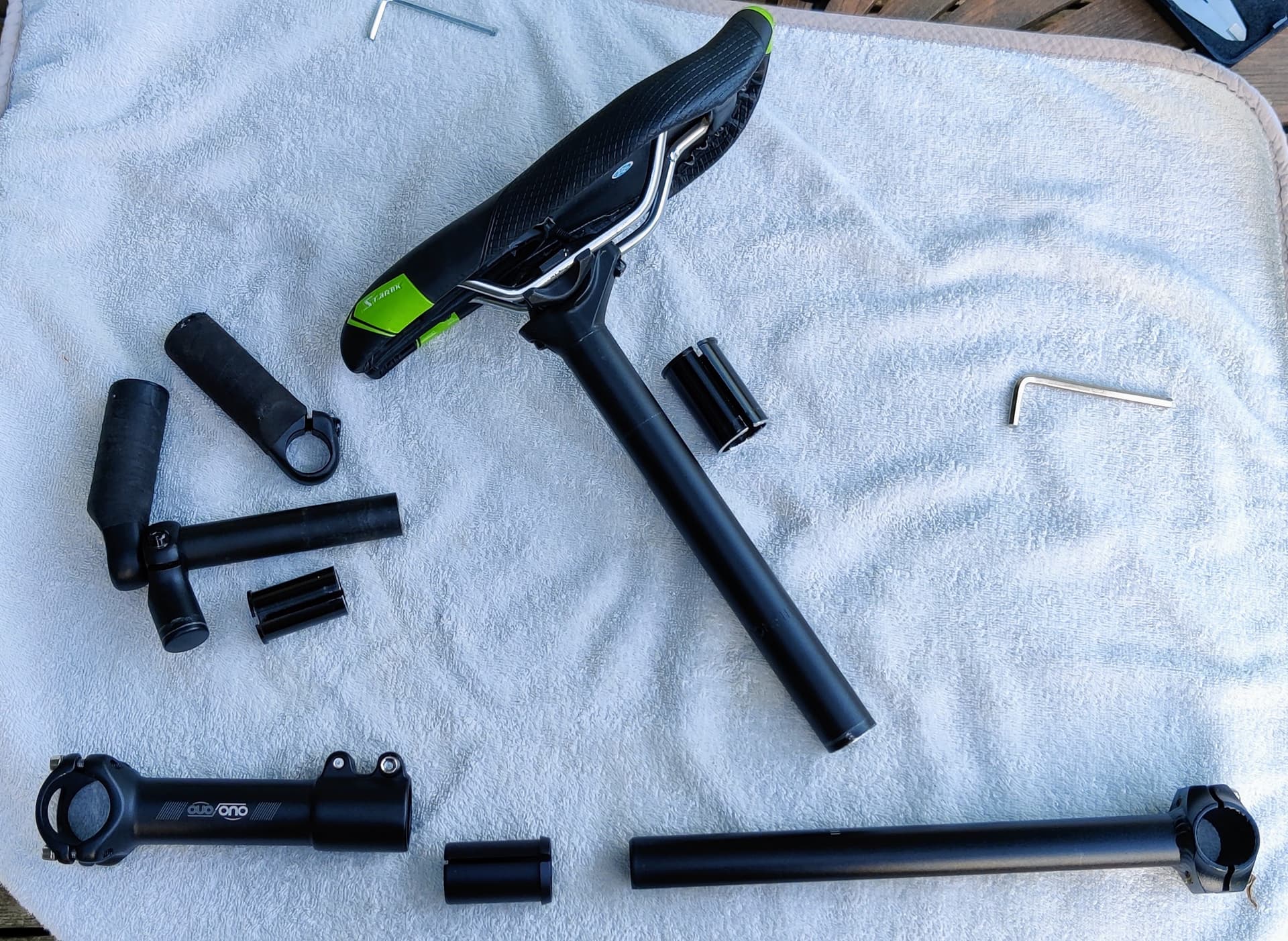 Btw if someone wants to tweak this setup with a different handlebar position I suggest getting a 28.6mm seat post and a regular 1 1/8"->25.4mm stem. It would obviously be possible also to use a stem with an adjustable angle for a flexible but a bit heavier setup.