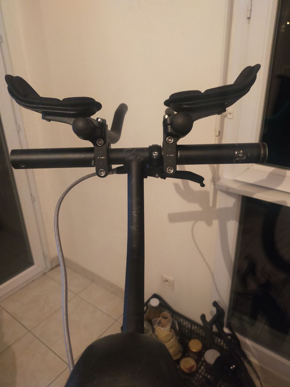 Based on a regular KH t-bar, I was looking for a bike-similar braking position. The issue is that the KH t-bar is too narrow to let you use it as bike handlebars. So I had to find a way to make the bar larger. Guess what? KH seat posts internal diameter is almost 22.2 mm. That means you can use an old cut seat post to have longer bars! Not tested it yet, I’ll give it a try tonight.