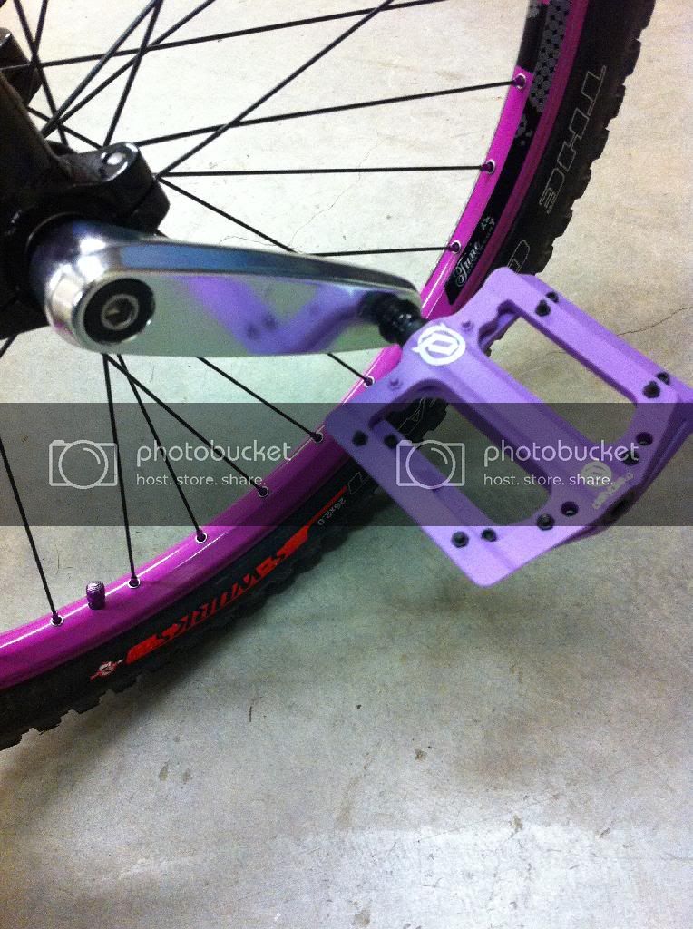 It weighs exactly 9 lbs. 26" Oracle frame, Dartmoor Trixie rim, Deity valve cap, lightweight racing tube, Specialized S-Works The Captain tire (2.0), DT Competition spokes, purple DT alloy nipples, Impact Exceed Ti hub, Qu’ax lightweight cranks, Deity Compound pedals, Deity seat post clamp, KH seat post, and Impact Naomi saddle. All that is left is getting rid of the D’Brake and someday getting a CF base. It’s made for XC, and it is soooo light and smooth!