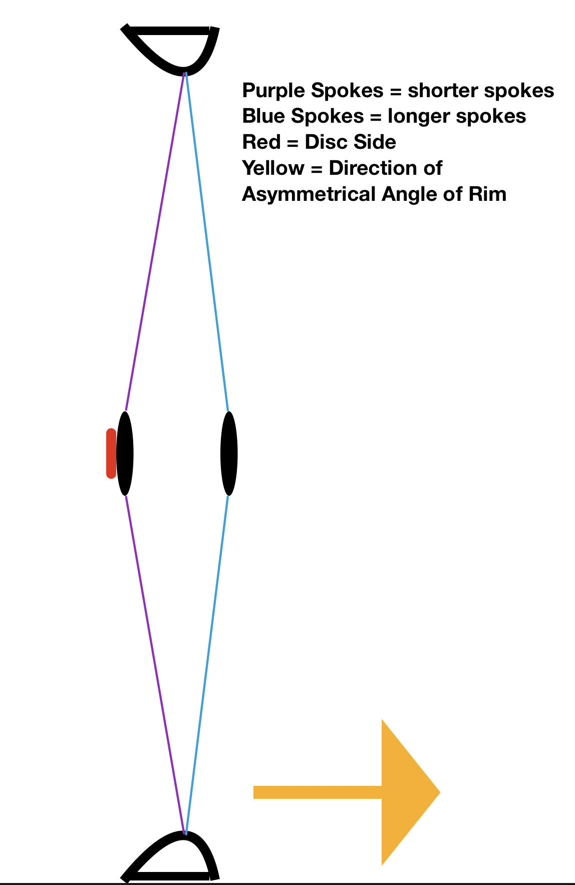 I also think visualising the disc side as needing more “space” for the disc etc - and useful as you want that side to be on the side of the asymmetrical rim with more space in the carbon surface area.