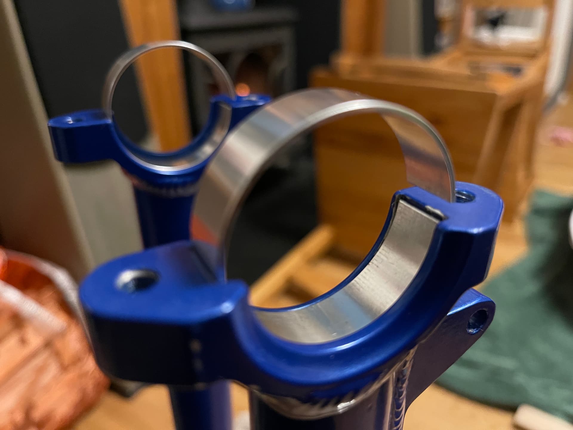 I’d use the shim to pad the pole out and up to match the Moocow mount and then file down the lip on the clamp so I can clamp the shim at the bottom of the stem / where it meets the frame. This would give added support to downward loads I’d hope into frame sections itself rather than relying on the welding of the stem internally.
