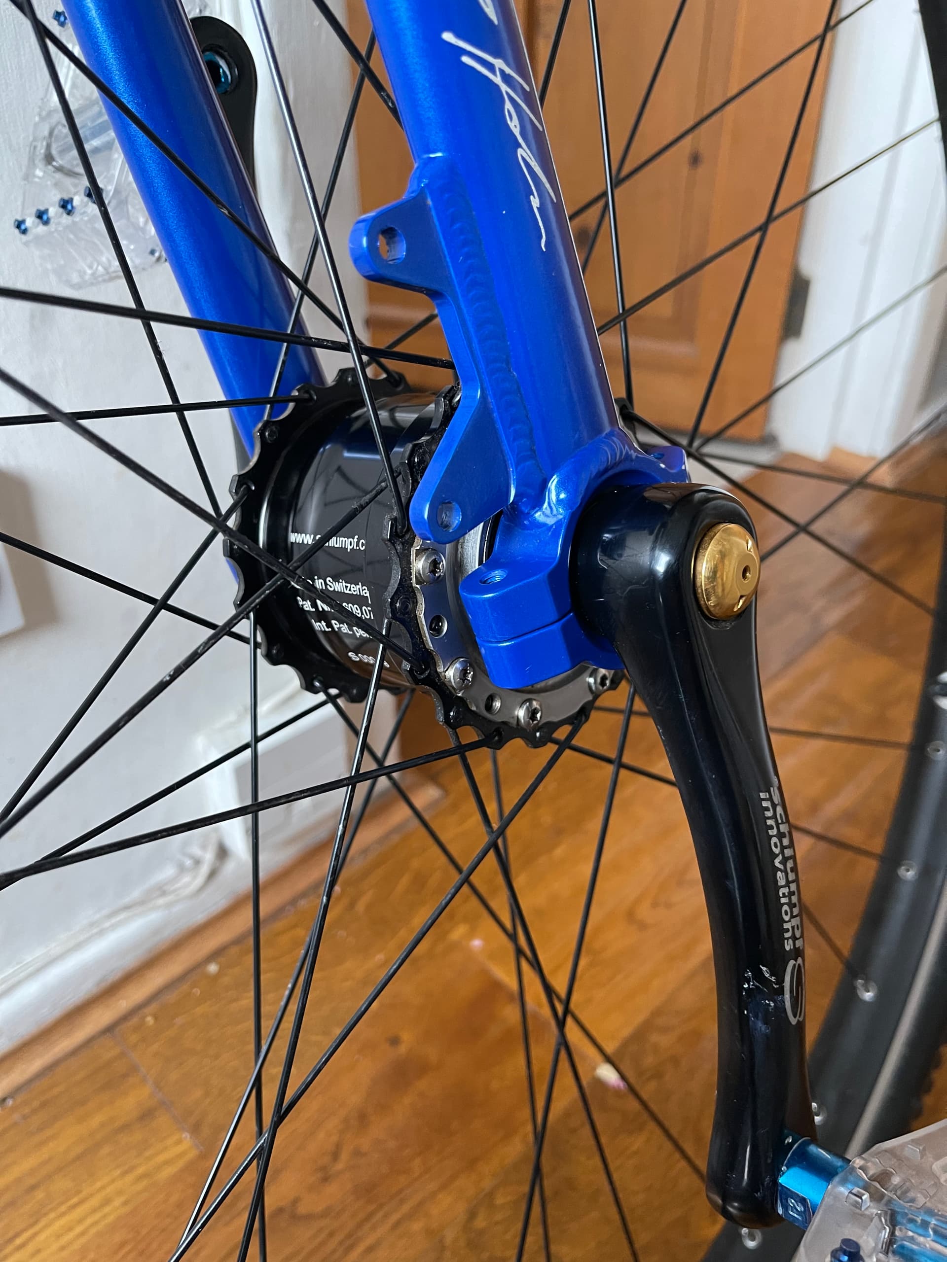 I think I’m going to have to live with it as my guess is it shouldn’t matter too much - I don’t fancy taking the cranks off and reversing the way the Schlumpf wheel runs (backwards, gold left, silver right) - but if brake rub is the next issue it might just have to do that.