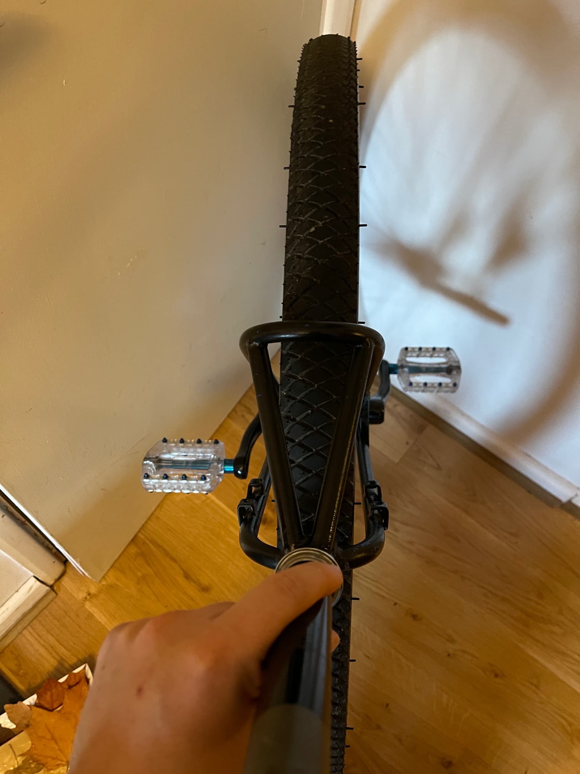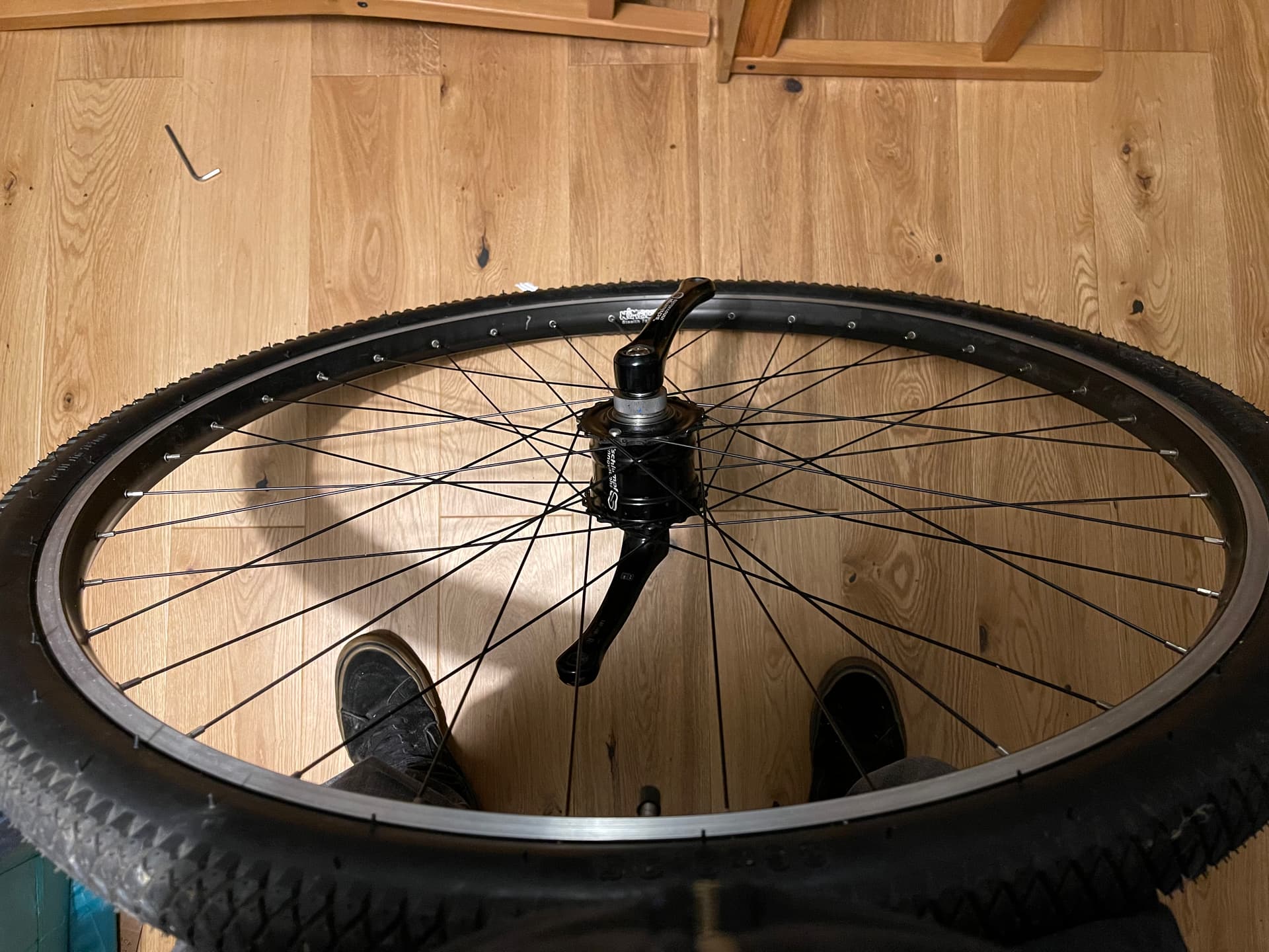 Odd side comment to this - the frame has been already cold set to 100mm and was run backwards when in Penny mode. When mounting the wheel is the orientation as you would for a unicycle I notice the wheel no longer runs dead centre to the frame. It’s not a truing issue as the wheel is true when checking in the KH frame and the build is ace - but it is more something to do with how the frame was set to 100mm I think. Odd all the same that this changes when you flip the wheel?!?