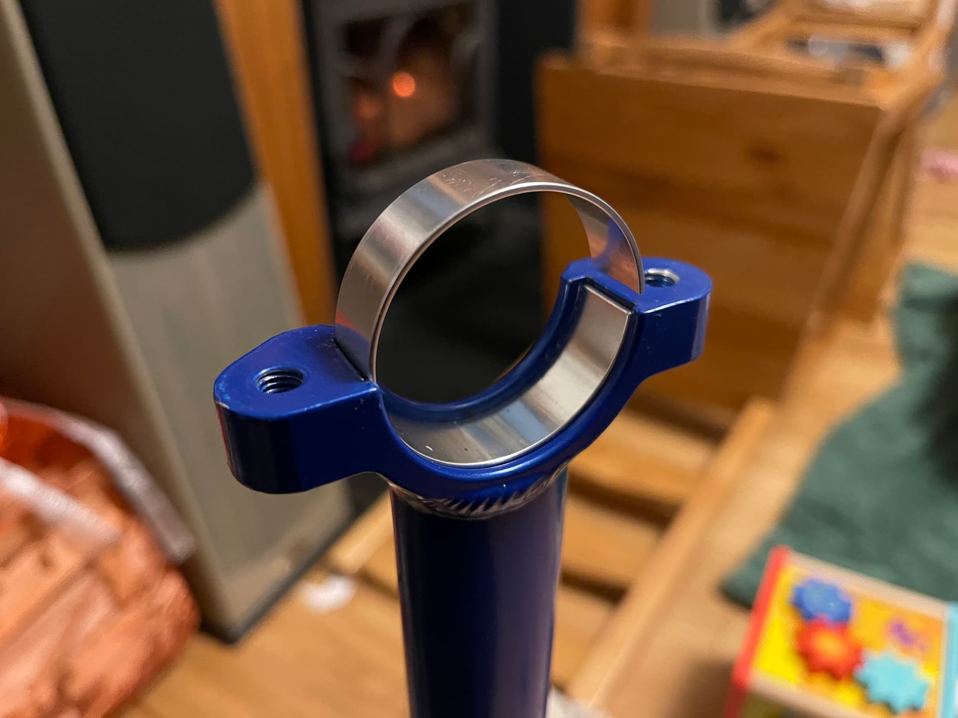 So I’ve exchanged problem of the 40mm bearing shims for this seatpost and saddle mounting affair. But I feel it is likely the best route for hub longevity and safety as once the saddle is set and works I’m unlikely to shift it around much. And if I find a friendly welder perhaps I can find a more beautiful solution.