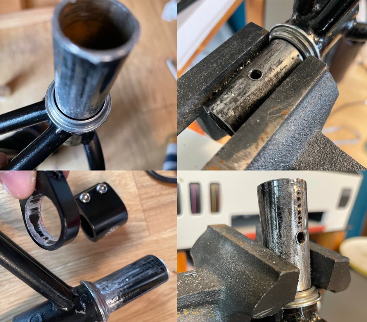 There’s a stem post welded into the previous seat post space and the clamp area has been cut off. I don’t know anyone local that is friendly enough to remove stem and weld a new seat post housing - but that would be ideal I think provided it doesn’t weaken the frame.