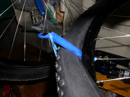 My problem was the last bit of the tire over the rim. I’d get to the point where there was 1 to 1.5 feet of bead left to fit over the rim. I’d try to get the last bit of tire over the rim and the bead at the other end would slip out and I’d end up making negative progress. I needed another pair of hands to keep the bead from slipping out as the last bit of tire is forced over the rim. I couldn’t figure out how to do that by myself. I just needed another pair of hands.