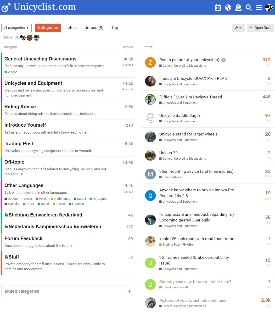 Currently, the default homepage of unicyclist.com is set to the category page, which is nice especially for newcomers: