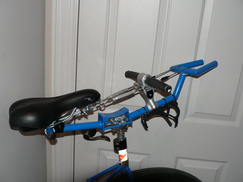 i like the handlebar from vicelemay! i just think the saddle will be to wide in the front for a streched position…