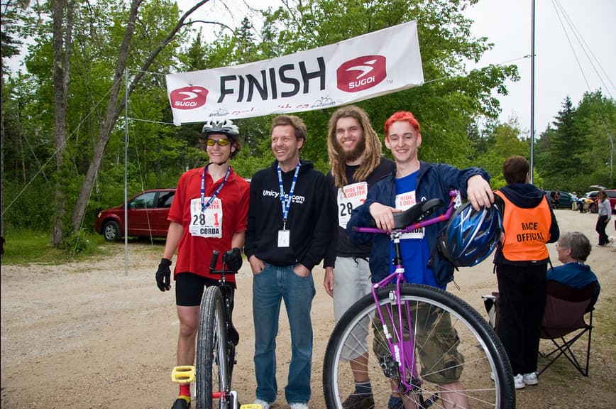 Having done the trip to Halifax and MUT though, the RTL distance was somewhat daunting but not crazy, especially when you break it up between the team members. We met on the unicyclist.com forums, and mostly were tied together by being Canadians all looking for a team to join. We were pretty geographically diverse, from BC, AB, Sask, and NL. I jokingly suggested the name Manly Legs and it stuck. My mom still tells stories of her coworkers ignoring their work to follow the trackers as they inched across Nova Scotia."