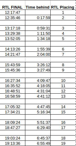 RTL: top nineteen finisher's times