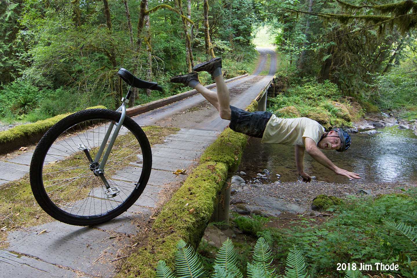This would likely be my scariest unicycle moment (really second). When I first started riding my 36er about 8 years ago after a 50 year break from unicycles I was not comfortable riding across the bridge. So I had planned to ride up to the start of the bridge and dismount. I hit a bump at the start of the bridge and took a header clean off the bridge. It was about 12 ft down to the ground below but the ground was soft and I sustained no real injuries. It was my most exciting dismount to date.