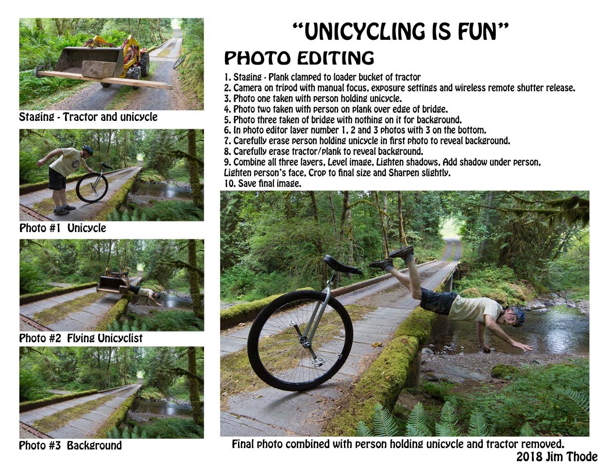 Naturally while I tried to hold on to the wall on both sides, the unicycle dropped away beneath me and I landed hard with my hip on the stone stairs. I had to lay there a few minutes to let the pain seep away. I’ve never done anything that stupid after