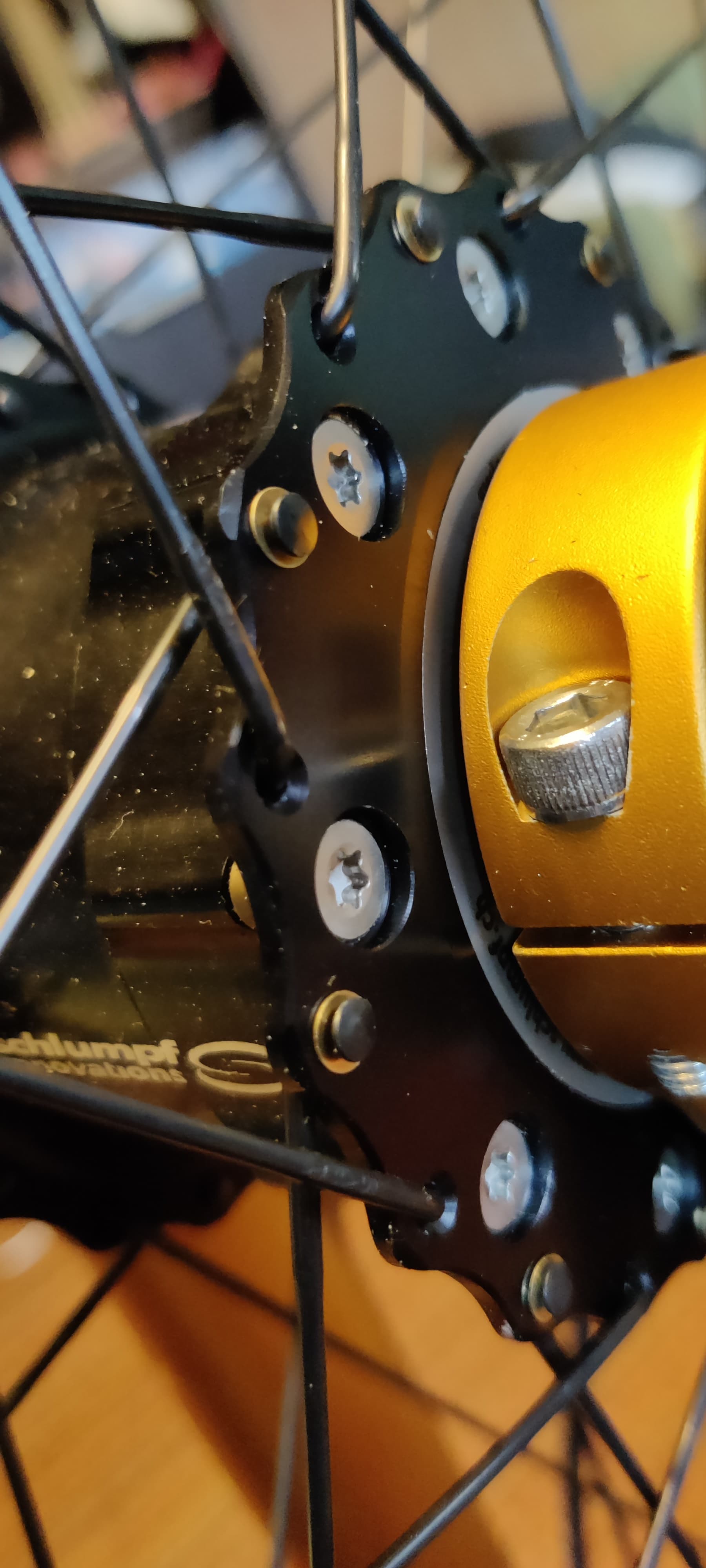 … I now looked closer and see that there are countersinks on both sides of the holes on my hub (400 series). In fact looking it up on the Schlumpf hub history thread I see it was a feature introduced in that series: