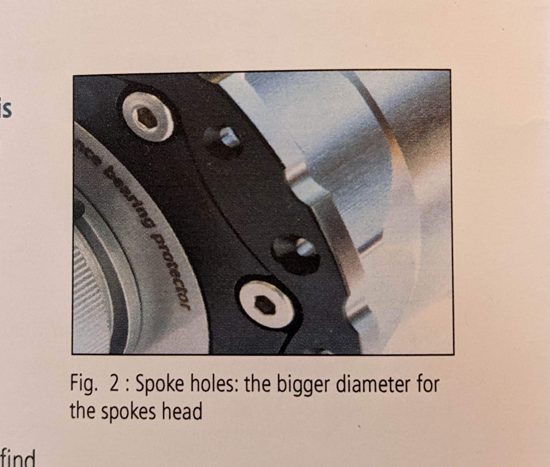 The manual snippet says that heads go into the bigger diameter countersink. But I am totally convinced that when it is alternating countersinking, then the spoke heads have to go on the flat side as the primary aim for the countersink is for the J-bend. And given the current likely fixable “disaster” regarding how close everything thing is for clearance - I also think spoking the wheel this way round (heads on the flat) helps give a wee bit extra space. And every 0.1mm counts!