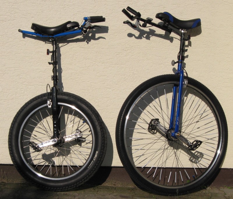 Meine Erfahrung entspricht eher der die Hugo gemacht hat. Obwohl ich sicher nicht selten mit dem Schlumpf-Einrad fahre, brauche ich zu Beginn immer ein wenig Eingewöhnungszeit. Ich habe ein 24" Einrad mit Schaltung. Meine Maximalgeschwindigkeit war bisher nicht ganz 30 km/h. Ich denke da geht noch viel mehr. Es gibt zwei Faktoren die mich bremsen. Der erste ist, dass ich schon ein paar Mal kräftig abgeflogen bin und bei Geschwindigkeiten jenseits von 20 km/h kann ich das nicht mehr auslaufen. Der zweite Faktor ist sicher, dass es bei mir hier in der Gegend keine wirklich ebene Fahrbahn gibt. Auf der welligen Piste fällt es mir schwer einen vernünftigen Tretrythmus einzuhalten.