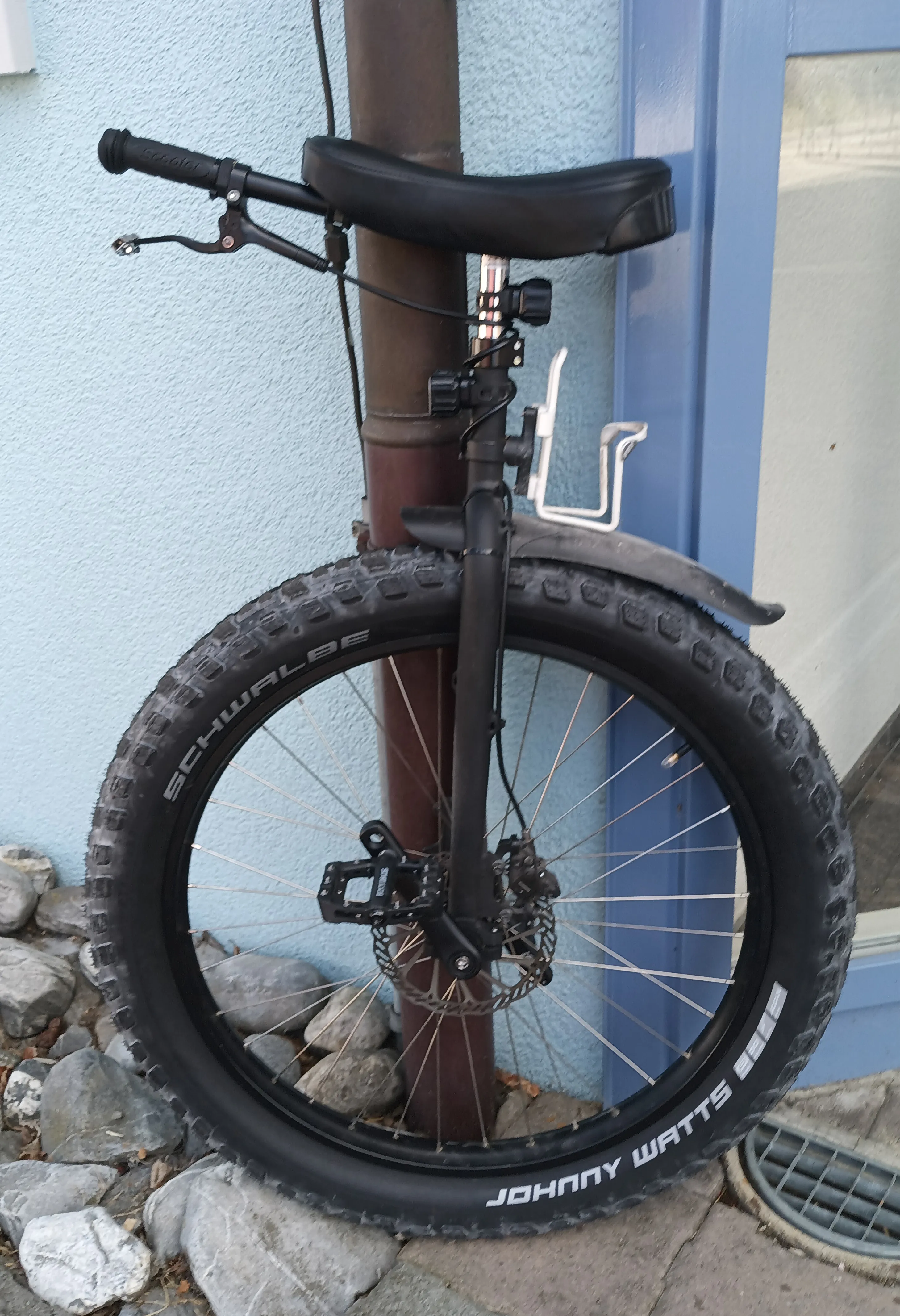 Jumbo Jim is the worst fatty tire for unicycles I know. It rolls brilliantly well, but is horrible to steer and has a lot of self-steering. It’s a real shame that this Johny Watts isn’t available as a 26x 4.0. SUV unicycle sounds good somehow. It would be exactly what I need, for example. I ride to work on asphalt and dirt roads. I want the tire to roll well on both surfaces and have enough grip. I don’t do downhill riding with it. I’m put off by the larger circumference of the 27.5x 4.0 (for example, it’s harder to get on when the hill is slightly uphill) and the heavy weight. Schwalbe says it’s 1610g, so experience shows it’ll be a bit heavier. You could probably use the Schwalbe 26" Fatty tube. I don’t know if my 26" TPU ones would work. They’re at least not as stretchy. We’ll see. When my shoulder has healed, I might give in and buy a tire like that to test.