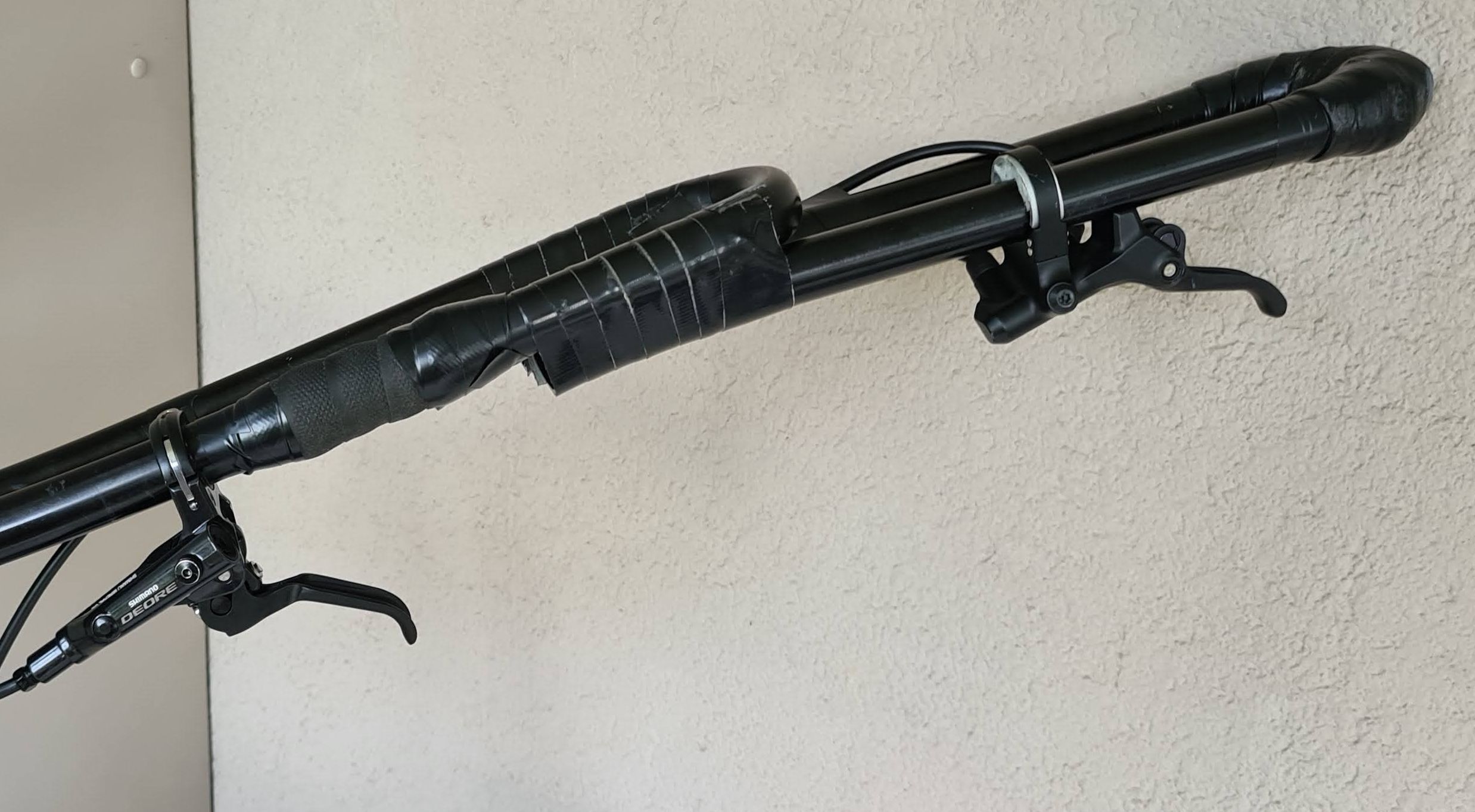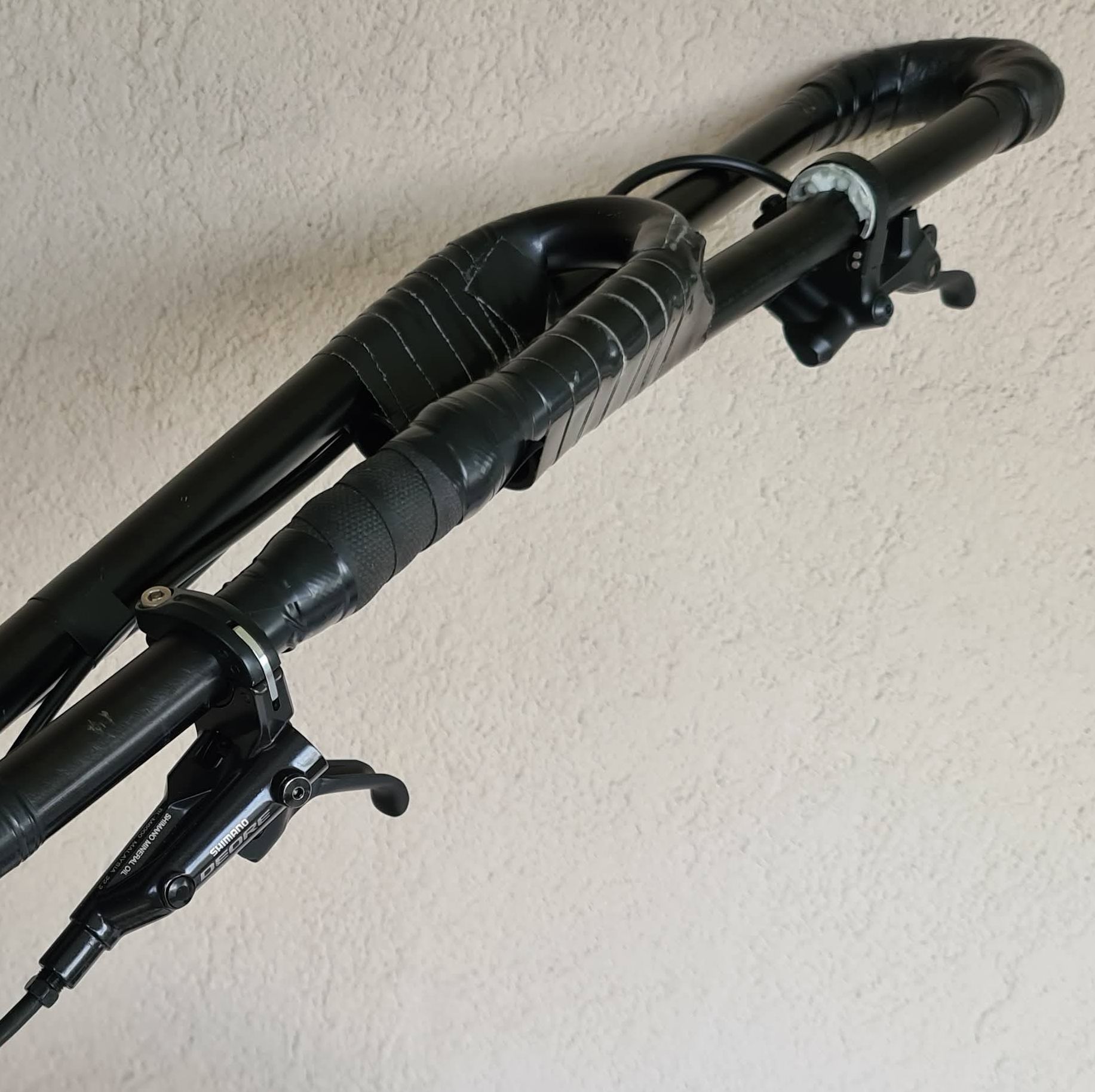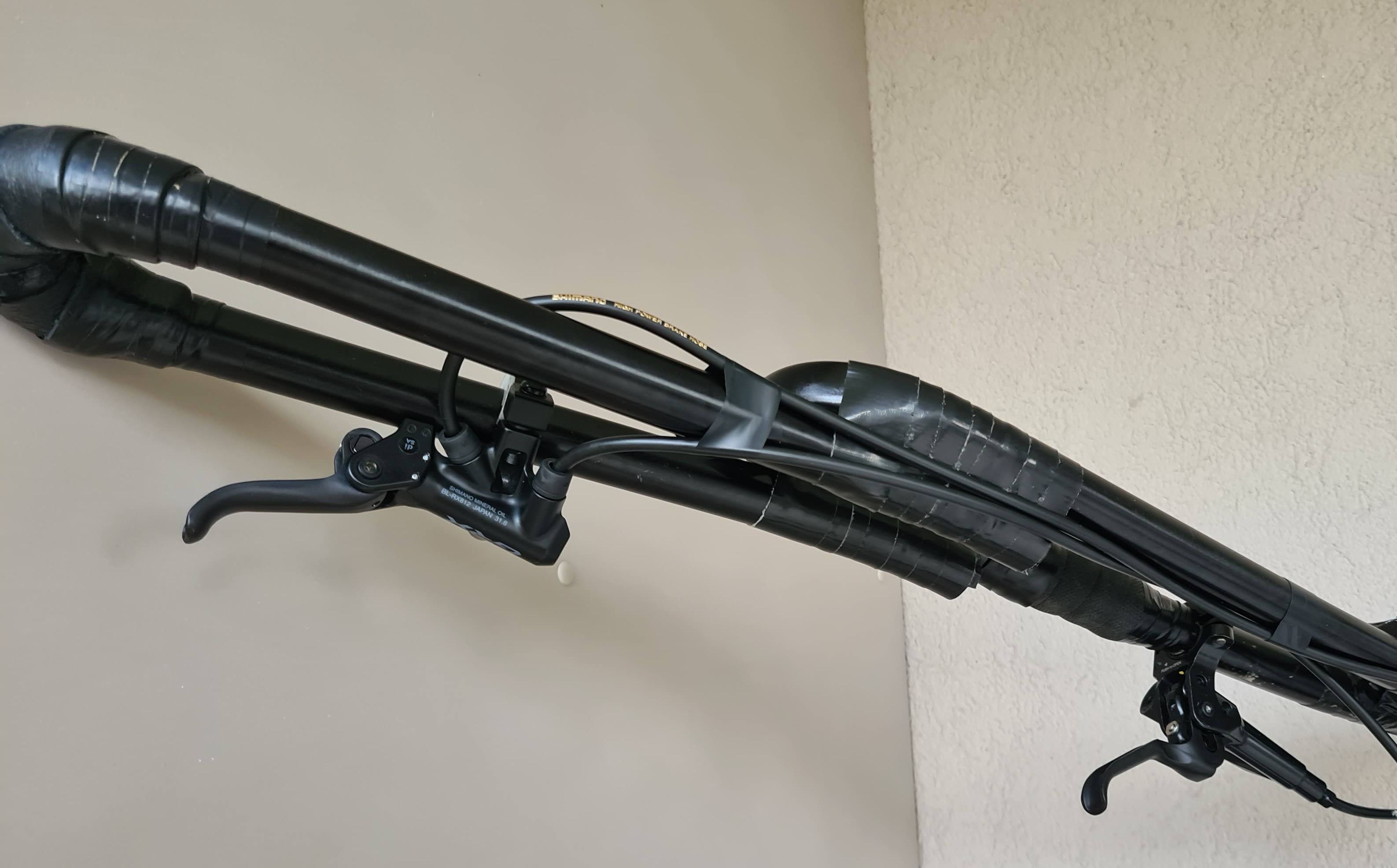 The GRX lever is weaker than the normal Shimano levers and a bit awkward to hold since it is so close to the handle. Therefore, I wanted the normal Shimano lever to be closer to the saddle (more control for muni) and the GRX far out. The GRX works fine in this position, which I only use for smooth (dirt) roads.