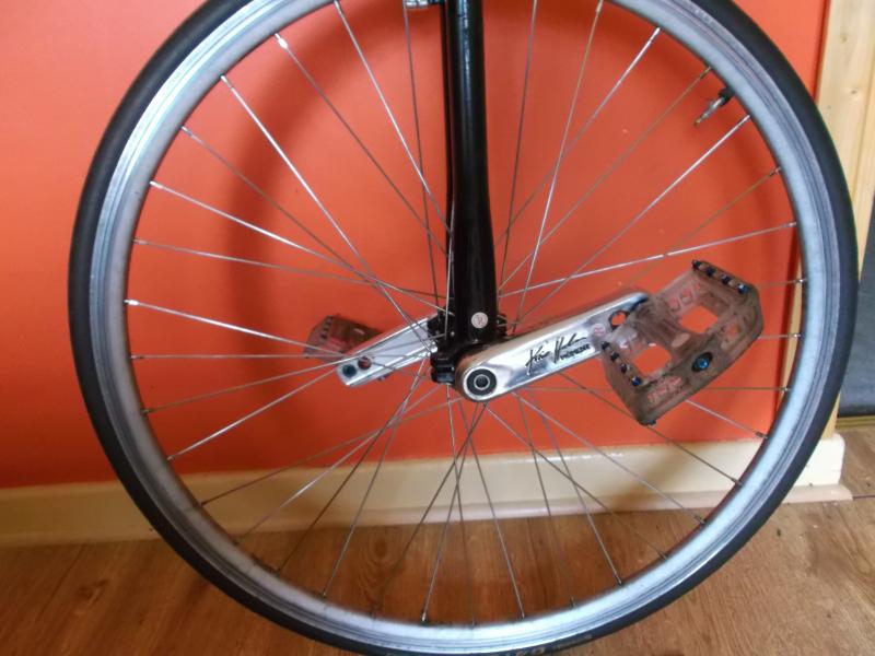 The light weight and smooth tyre makes a big difference in performance and response to the riders efforts, better than I expected. Typically I ride a 36er with 165mm cranks and 24er with 3" tyre and 150mm cranks. But they are clumsy when compared to my skinny uni, they require a lot more effort.