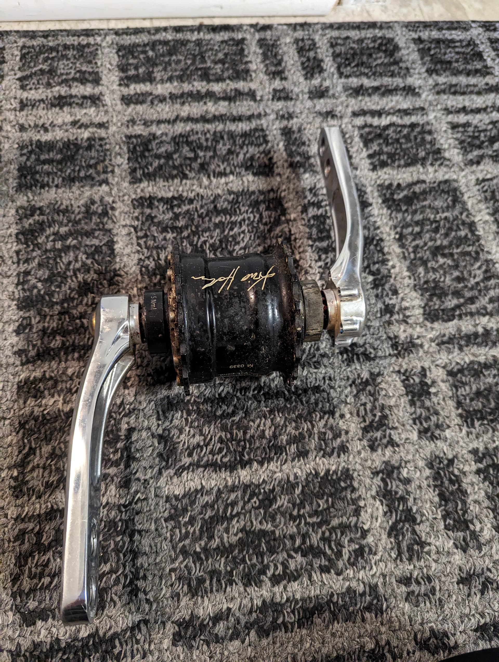 Hub is in great condition and will include a modified pair of pliers that I’ve been using to remove the shift buttons. Cranks were recently installed and the hub is in working order.