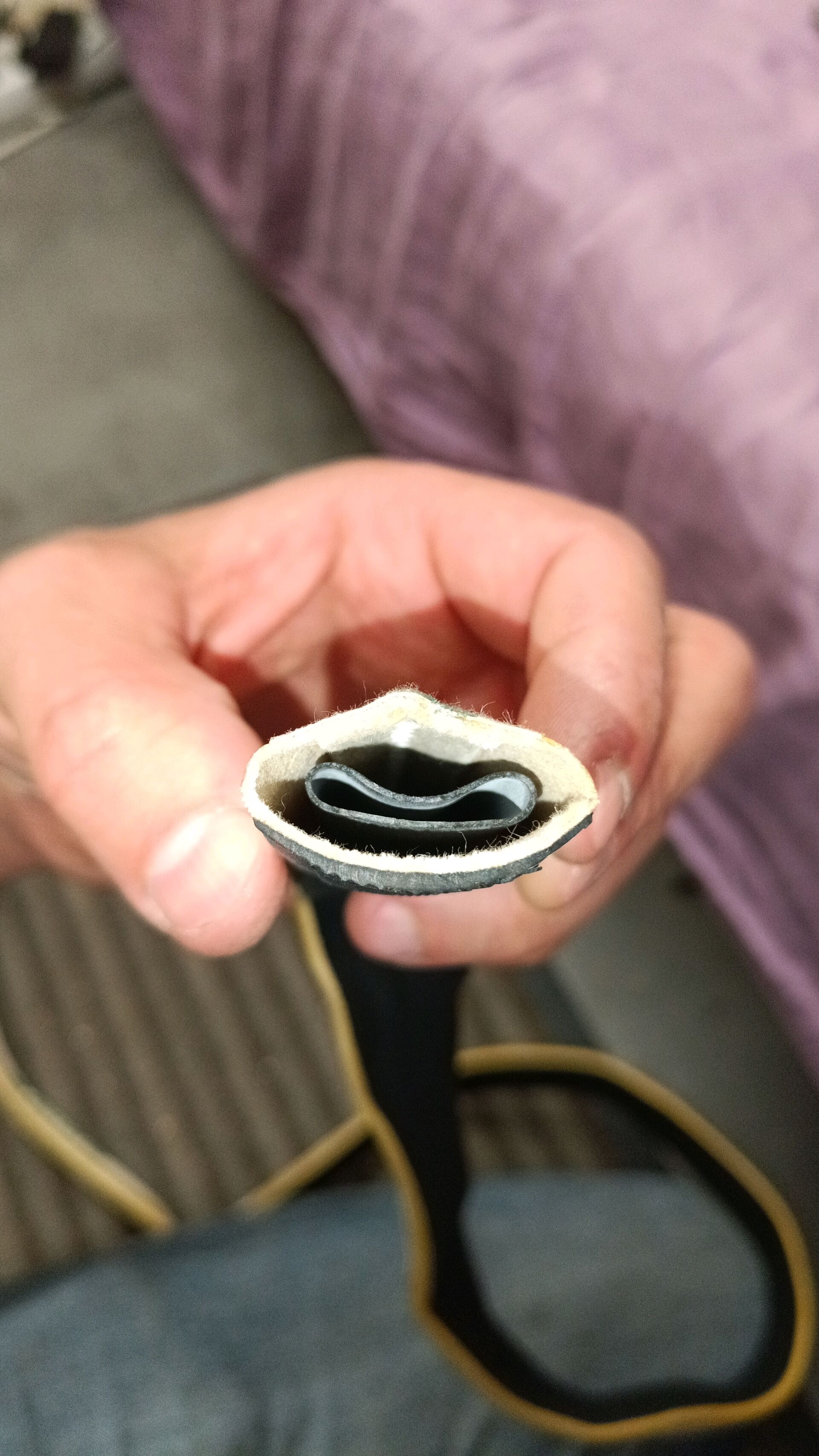 Most tires will have a mold release agent on them, which will prevent glues from bonding properly. I used some sandpaper and rubbing alcohol to prepare the surfaces for bonding. I also perforated the upper side of the join to allow excess glue to squeeze out.