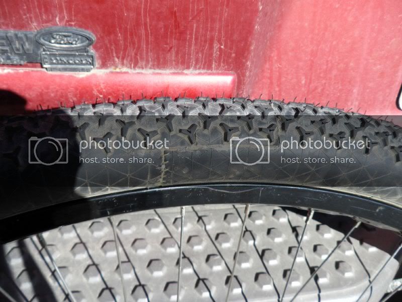 I found that counting the tread repetitions and doing a bit of arithmetic worked better than trying to measure the bead lengths since the tires don’t lay flat and have a small amount of stretch. Remember than 24” tires have a 507mm bead diameter, 26” = 559mm, 29/700C = 622mm, and 36 = 787mm