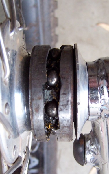 I was wondering what was causing so much lateral play down around the hub and why my tyre was rubbing on the frame to the point that it was no longer ridable…turns out I completely split open my right hand bearing casing.