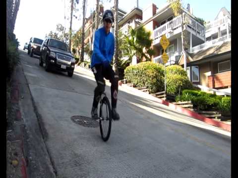 I would love to see that “40%” grade [concrete] hill. Nothing “routine” about a hill that steep, lol! And of course bikes with ultra low gearing make climbing MUCH easier than on a 1:1 unicycle! But I’ve ridden up 30% and steeper grades straight up, but even if traversed, you are still climbing it, and making Fargo to the top any way you can is what it’s all about. I can ride it straight up for a pretty good distance, but at a certain point you simply run out of forward momentum, and you either start to tack or stall out.