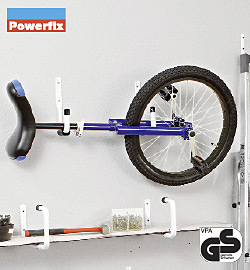 Iv’e been looking for a way to store unicycles in my garage for a while as there are three lying arouind. I’d never thought of hanging them upside down from one hook. Do you mean hooking it by the rim?
