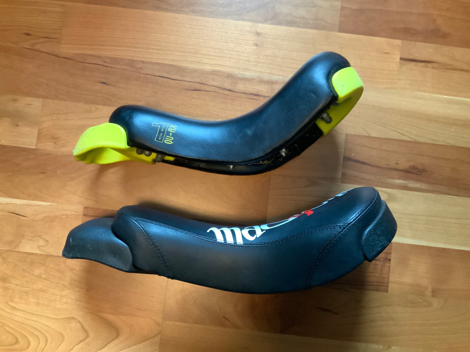 Hi Felgenbremse, ich hätte hier zwei Sättel herumliegen. Der Mad4One ist praktisch unbenutzt, hat aber Schrammen an den Schutzecken. Der Qu-Ax ist ein älteres Modell in Bananenform. Mir beides zu unbequem…