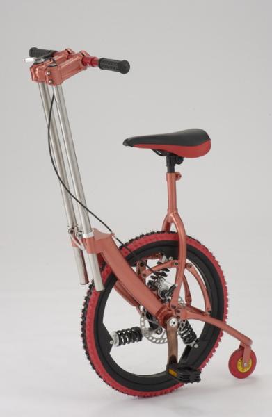 hahaha!! thats kewl and dumb at the same time! Why does it have handlebars tho, and a training wheel? well it shows you can make a unicycle with suspension with a little tweaking.