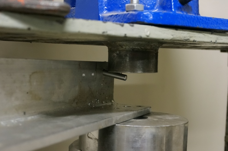 And we are in luck. I pushed an identical 6mm dowel pin into an identically drilled hole in a piece of aluminum ‘L’ stock to see what kinds of forces were needed to bend the planet carrier pins using a press with a digital readout.
