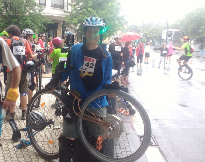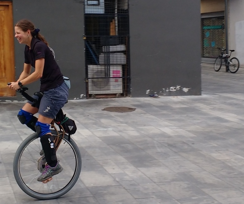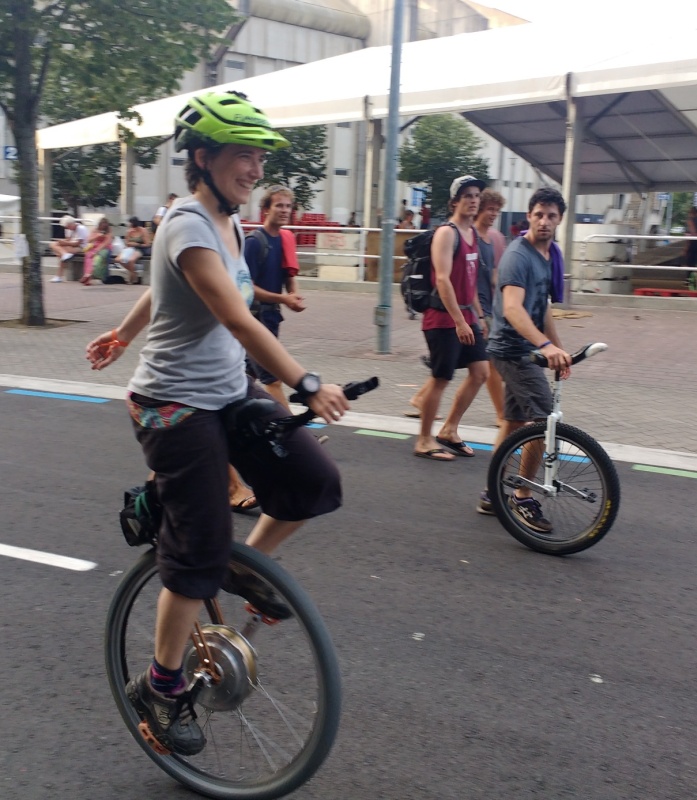 And Finally, Anne-Sophie has grown quite skeptical of testing any my unicycle creations since getting injured on my earlier prototypes some 5 years ago. But after sooo many people at unicon were giving the thumbs up on this one she at last gave it a go and cracked a smile too:
