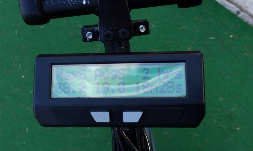 Riding along, I would first dial the gain up to a value that makes it much easier to balance the unicycle but doesn’t overshoot on each down stroke of the cranks. Then whenever there was an up hill ahead I would hit the “up” button a few times to give the desired level of hill climbing torque, and similarly on the downhills I’d hit the “down” button until the braking force was just right.