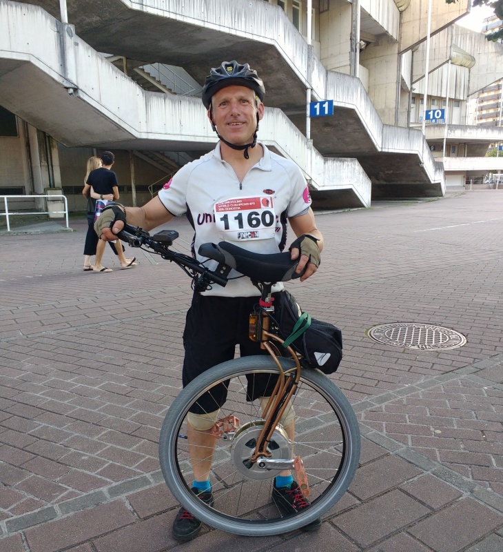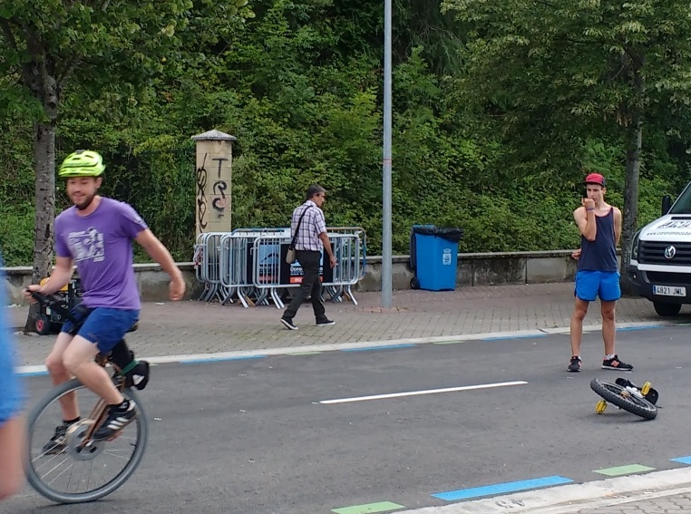 Here we were at the city where the downhill competitions were held. The guy coming off the unicycle Christoph has also built his own internal geared hub with the ring and sun gears reversed so that it has like a 2.5:1 ratio, which unfortunately I didn’t get a chance to see but he’ll be racing with it in the marathon ride tomorrow.