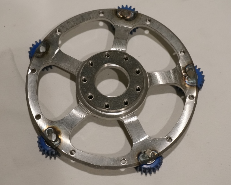 And now the backs of the pins are welded in place, so no more concern about the planet carrier being a weak link in the mechanical system.