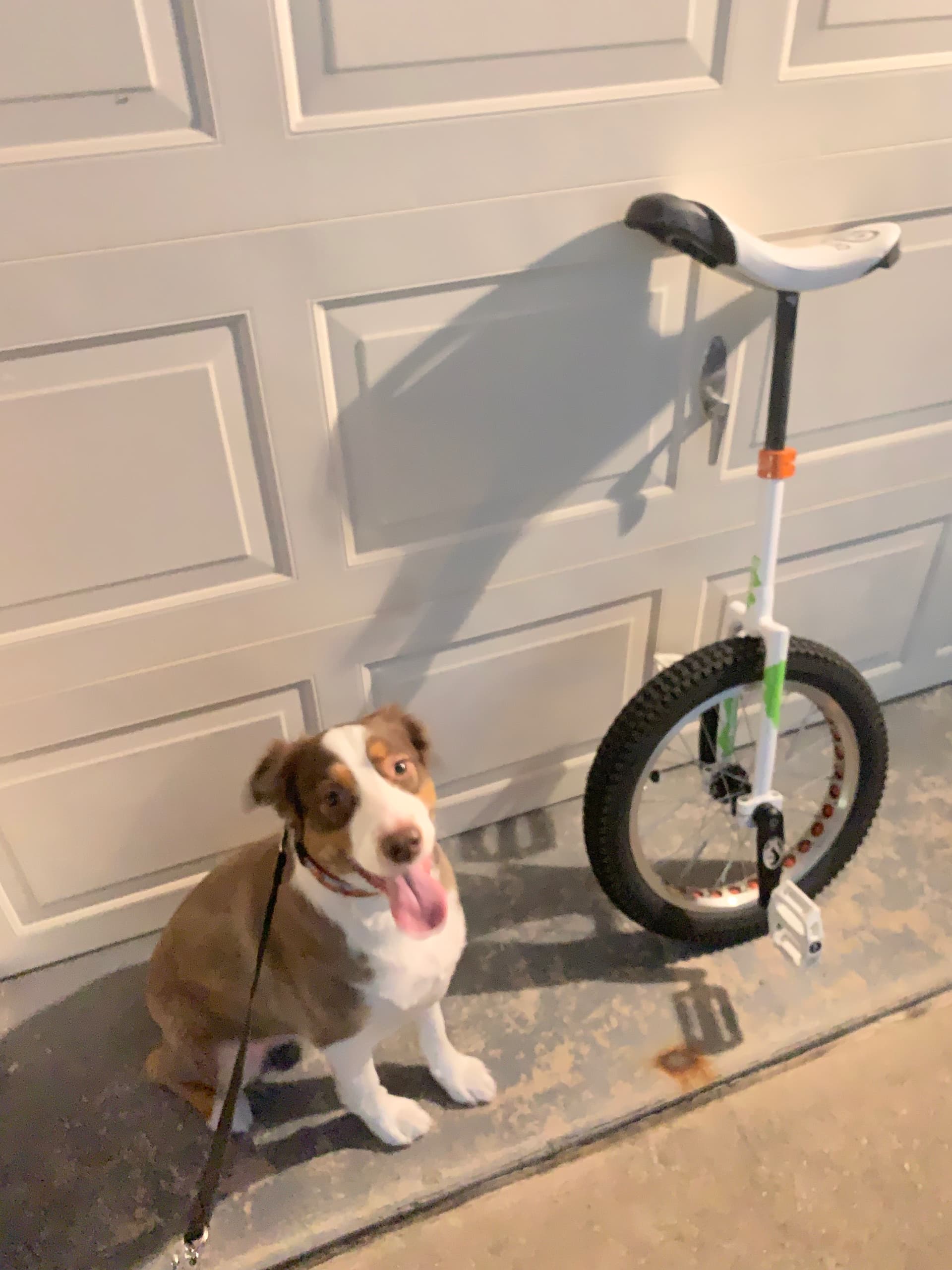While I can walk the dog while riding unicycle, I don’t think I am good enough to walk the dog while riding a unicycle, while taking a selfie that captures me, the dog, and the unicycle. So, I took a photo after the ride.