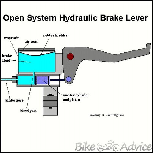 With the vent in the system the reservoir is only designed to hold the fluid at no pressure. If you look close you should see the vent hole in the body of the lever on any hydraulic system.