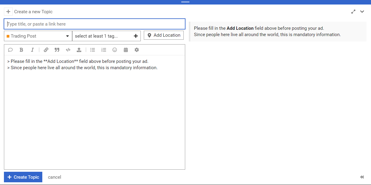 Thank you canapin for putting so much thought and effort into making the trading post a better place to buy and sell. And thanks to all of you that have contributed to this lively discussion. For me this discussion has altered my way of thinking somewhat. Stating a location definitely will weed out inquiries that are going no place based on logistics and as you mention I never realized that statng your location was an option. I also see that outside input in some cases can be helpful but I will stand my ground that it can often do more harm than good.