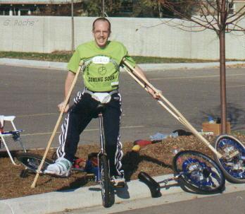 In terms of broken bones from unicycling accidents, I know of 3 broken ankles and 2 broken wrists. I think it is between Ken and Dustin as to who has had the worst accident while unicycling. Both managed to totally snap through bones, requiring much addition of metal to their legs.