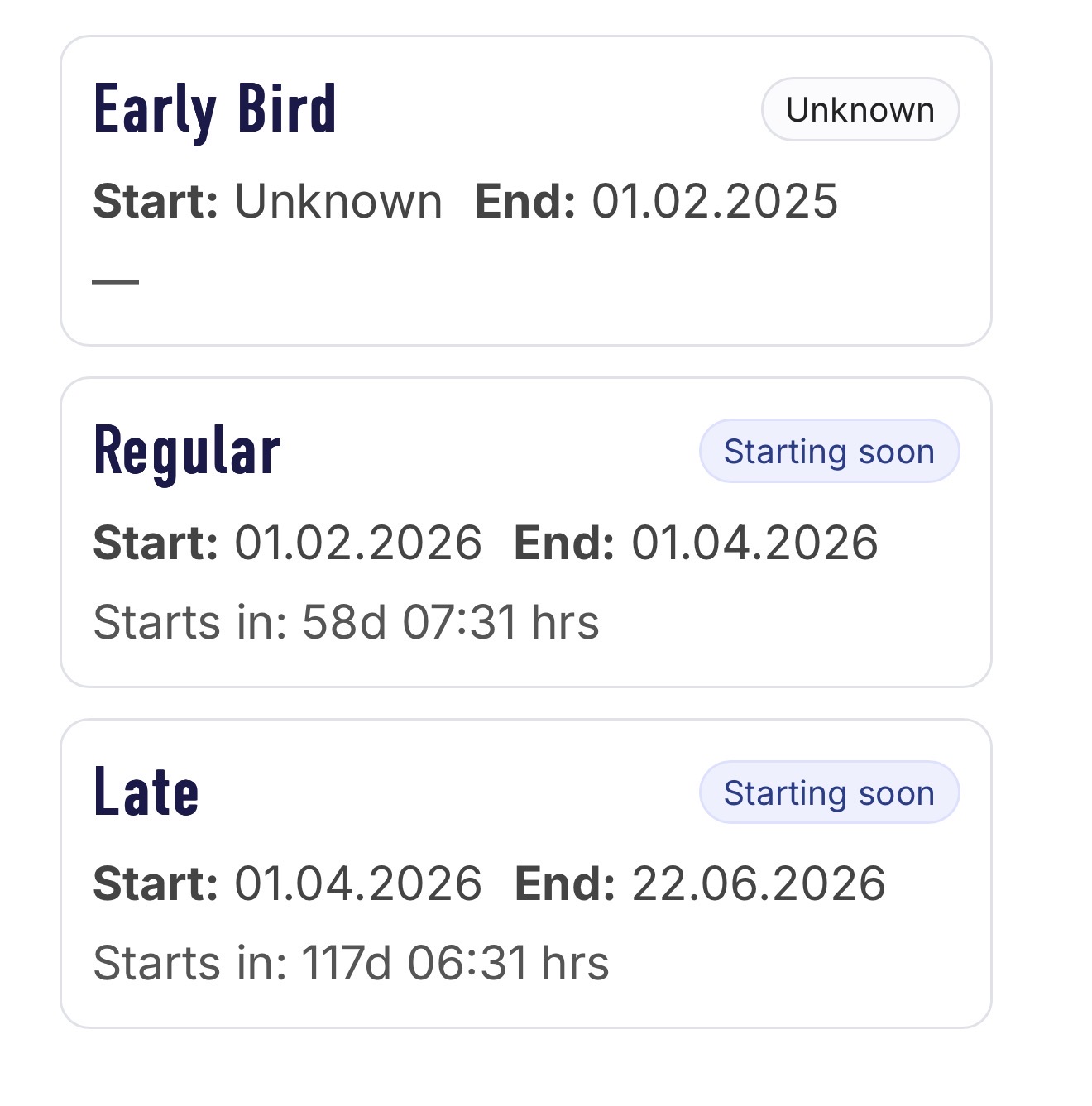 I’ve just seen the closing date for early bird tickets has moved back again, it’s gone from 31/12/2025 to 31/01/2026 and now showing as 15/02/2026. Is this just waiting for the new rule book or is there another problem?