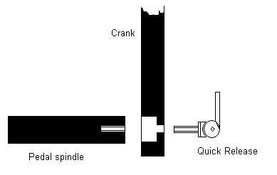 Maybe something like this (hope it attaches okay). The pedal spindle end would be square section or maybe splined. Harper, apologies for incorrect depiction of threaded sections, it’s all I could do in MS Paint and 10 minutes…