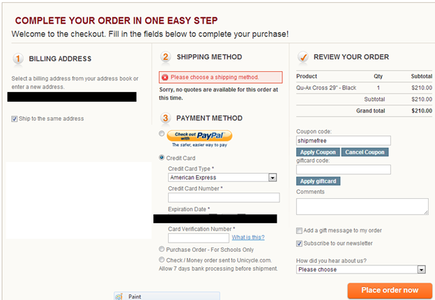 Hi guys. I am currently trying to purchase a Qu-Ax Cross 29" from the Cyber sale on UDC. However, at checkout it does not give me a shipping method to select.