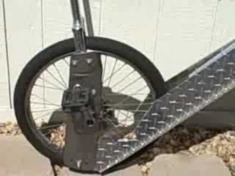 When you move the lever, it shifts your weight to the front and rear. Never tried anything like it, so it’s hard to tell if it would make for a useful training aid. I get the impression that the guy in the video has just completed it, so is showing what the mechanism does, but isnt’ (yet?) riding the unicycle. I’d like to try one.