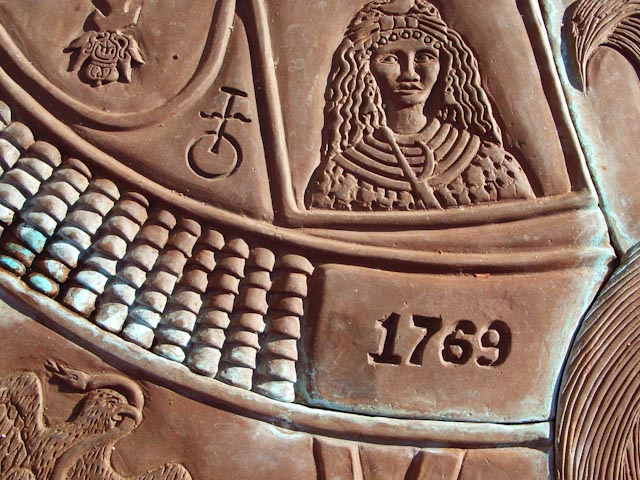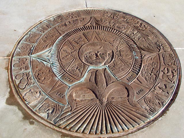 Below is one of the three “great seals” on the ground in front of the California State Capitol building. This one is about early history, including the early Spanish Missions up the coast. A closer look reveals what looks like a giraffe unicycle?? Apparently this was the cattle brand used at one of those missions, though I was unable to figure out which. It would be interesting to know, along with what that image really represents!